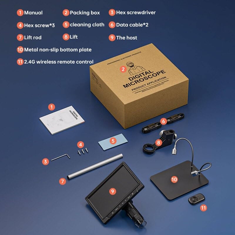 - تكبير قوي: مجهز بمجهر كاميرا بدقة 12 ميجابكسل يلتقط صورًا ومقاطع فيديو عالية الجودة، مثالي لإصلاح الإلكترونيات وفحص لوحة الدوائر الكهربائية والفحص التفصيلي