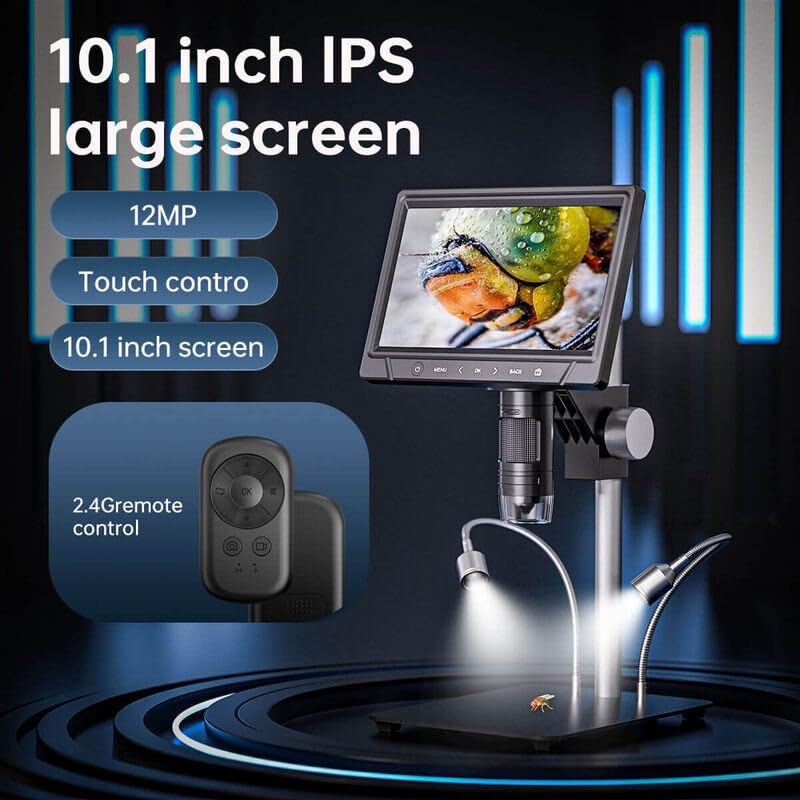 Generic - مجهر رقمي 351A مع شاشة فل اتش دي 10.1 انش، كاميرا 12 ميجابكسل، اضواء تعبئة مزدوجة، مجهر فيديو للاصلاح