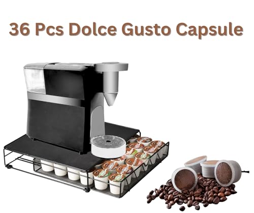 Trendi - 36 كبسولة تخزين كبسولات القهوة مع درج منزلق | حامل قهوة بسطح مطاطي وأقدام مضادة للانزلاق | تصميم موفر للمساحة، صندوق منظم لكبسولات القهوة دولتشي غوستو | مثالي للمطبخ والمكتب