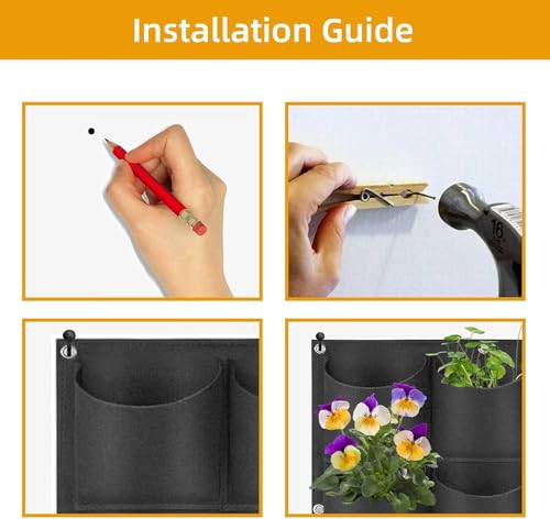 - 【سهلة الاستخدام】تسهل وتسرع الفتحات المعدنية حول الأكياس تعليق وعاء النباتات العمودي لديك، وهي سهلة التعليق والتثبيت، كما أنها صلبة ومتينة ويصعب تغير شكلها. لا تقلق بشأن الحائط لأنها تتميز بامتصاص قوي للماء. يُثبت على الحائط، وتوضع فيه التربة مباشرةً، ويُزرع بالبذور أو بالنباتات الموضوعة في أصص، وهو ذو مظهر تزييني للغاية.