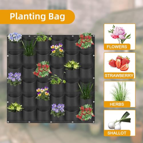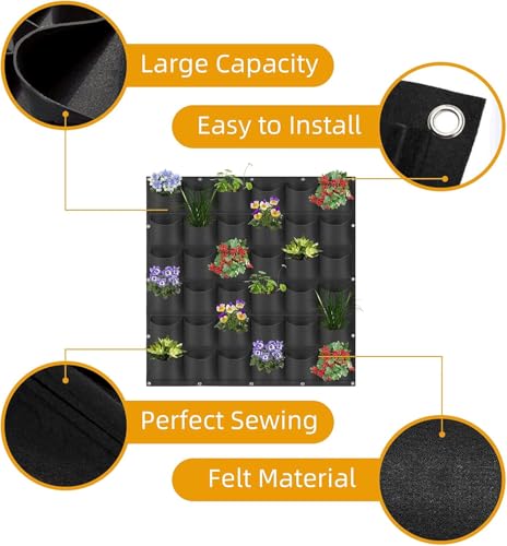 Generic - وعاء زراعة جداري معلق 36 فتحة - من ميريديان حقيبة نمو نباتات عمودية لتزيين الجدران والحدائق المنزلية، قماش مسامي متين (1×1 متر) - أسود