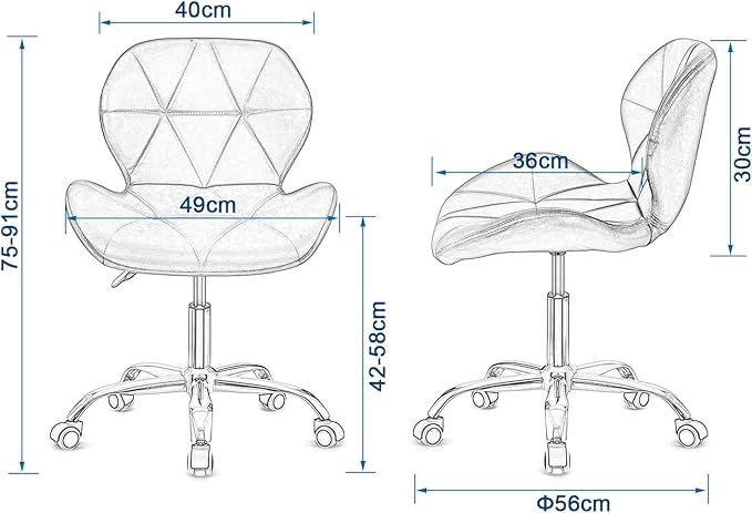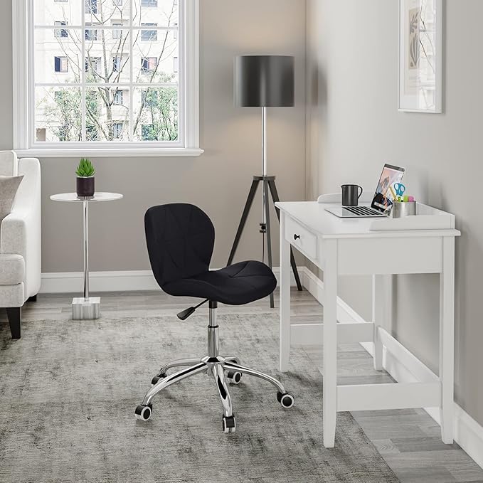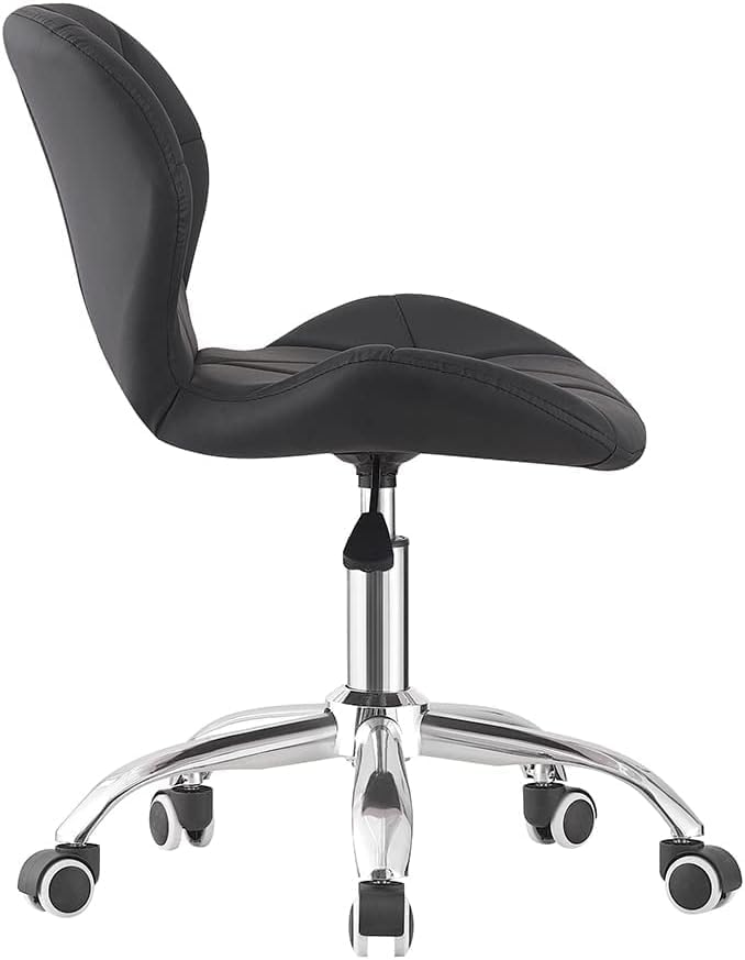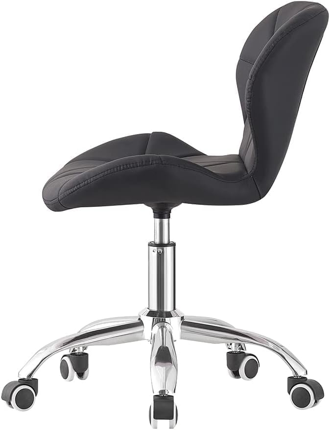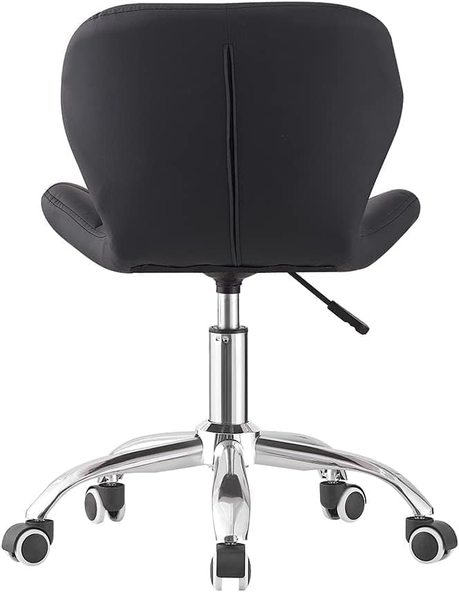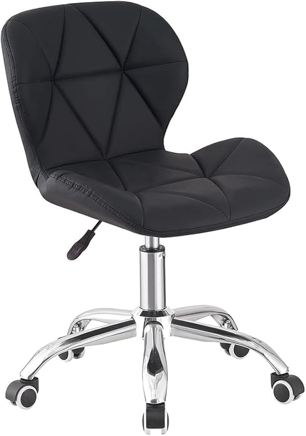 Reyad Group - كرسي مكتب دوار 360 درجة قابل للتعديل، مصنوع من الجلد الصناعي مع عجلات ورافعة، كرسي غرفة دراسة منزلية بقاعدة كروم بتصميم مبطن (أسود)