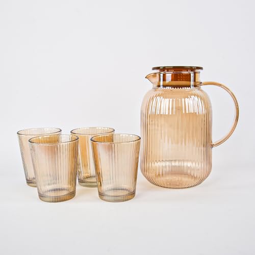 Generic - مجموعة نورديك مكونة من شفشق مياه زجاجي و4 أكواب من 360 ديجري