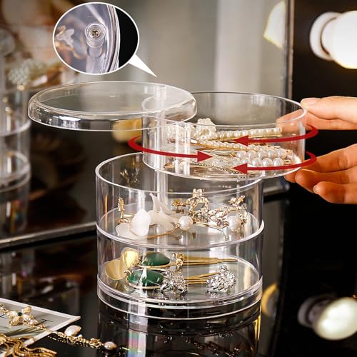 - فعالة: يُصنع منظم الاكسسوارات الاكليريك الدوار من مادة الاكريليك الشفاف البيور، وهذا يسمح لك برؤية المحتويات بوضوح وسهولة، مما يوفر وقتك في البحث عن الأشياء.