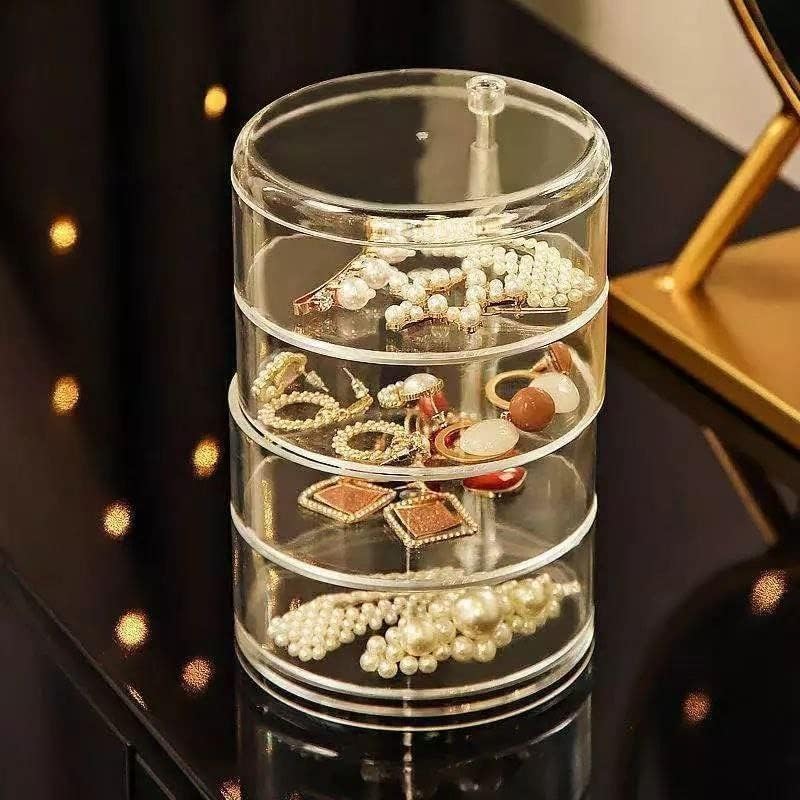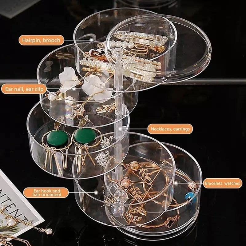 - مرنة: تحتوي على ٤ طبقات دوارة تتيح لك تنظيم وتخزين مجموعة واسعة من الاكسسوارات بسهولة وبشكل منظم.