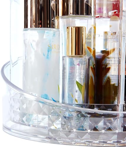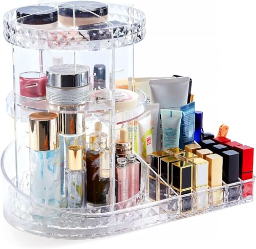Generic - منظم مكياج اكريليك دوار 360 درجة تصميم شفاف وانيق عرض وتخزين مستحضرات التجميل لمستحضرات وادوات المكياج والمجوهرات