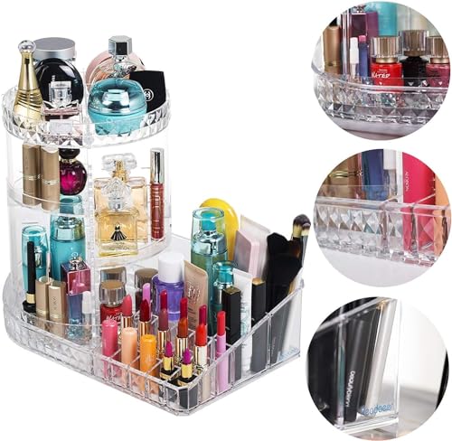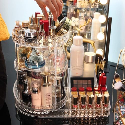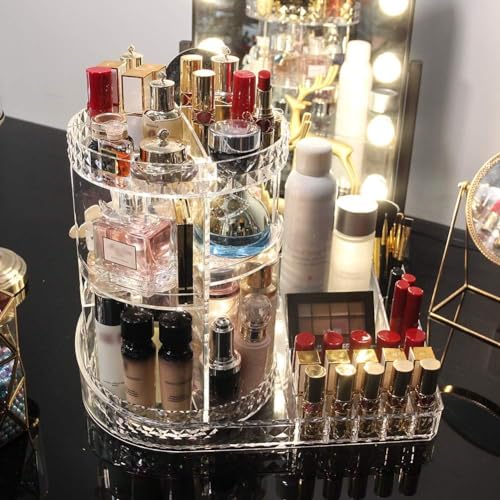 - نقدم لك منظم مستحضرات التجميل الاكريليك متعدد الوظائف يدور 360 درجة وهو أمر لا غنى عنه لجميع محبي المكياج ومحبي المجوهرات. تم تصميم هذا المنظم لتوفير حل واضح وأنيق لعرض وتخزين مستحضرات التجميل وأدوات المكياج والمجوهرات في مكان واحد مناسب.