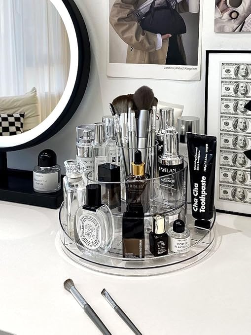 - تصميم دوار: يتميز بدوران سلس 360 درجة للوصول السهل إلى جميع مستحضرات التجميل ومنتجات التجميل الخاصة بك من أي زاوية