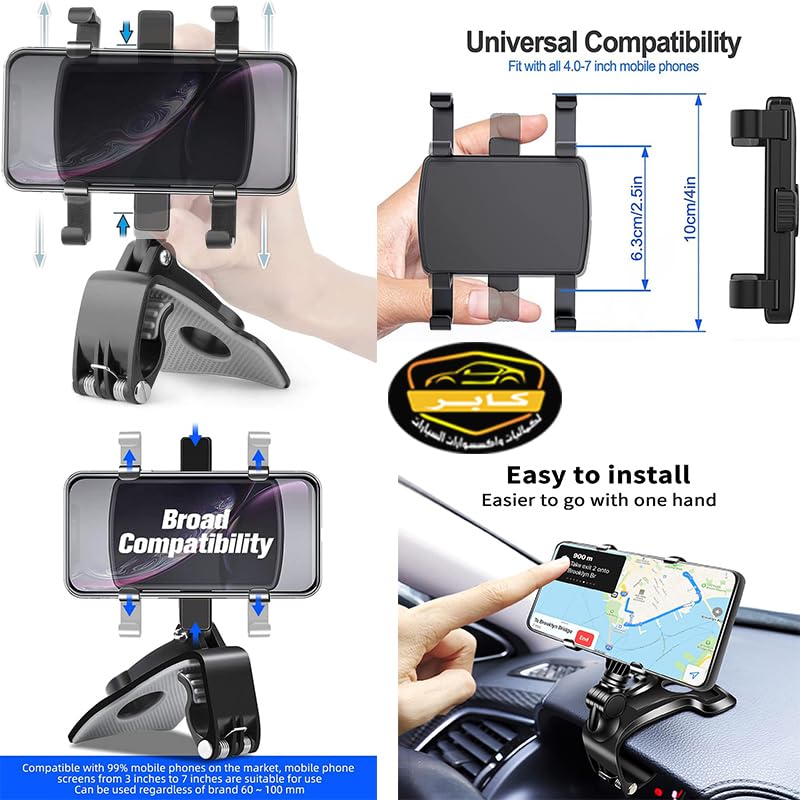 - توافق عالمي: تم تصميم حامل موبايل السيارة بتوافق الواسع مع مشبك يمكن تعديله ليناسب جميع الموبايلات من 4 -7 بوصة. متوافق مع جميع الهواتف الموبايلات وأجهزة اخرى . انتبه: الجزء الثابت من لوحة العدادات يتطلب سماكة أقل من 5 سم/2 بوصة.