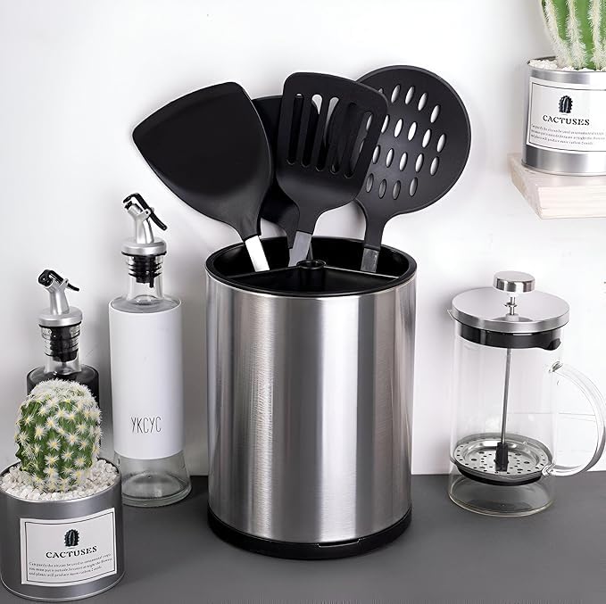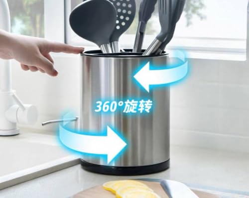 Generic - حامل أدوات المطبخ الدوار 360 درجة، مقاوم للصدأ، حجم اكس لارج، مع قاعدة ثقيلة، لتخزين الملاعق والسباتولا، للمطبخ