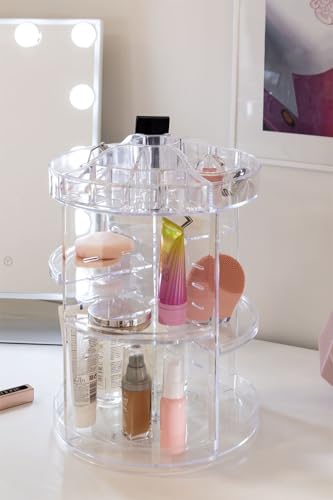 Generic - منظم مكياج دوار 360 درجة شفاف بسعة كبيرة لتخزين مستحضرات التجميل مع ارفف قابلة للتعديل، منظم شفاف لمستحضرات التجميل والعناية بالبشرة