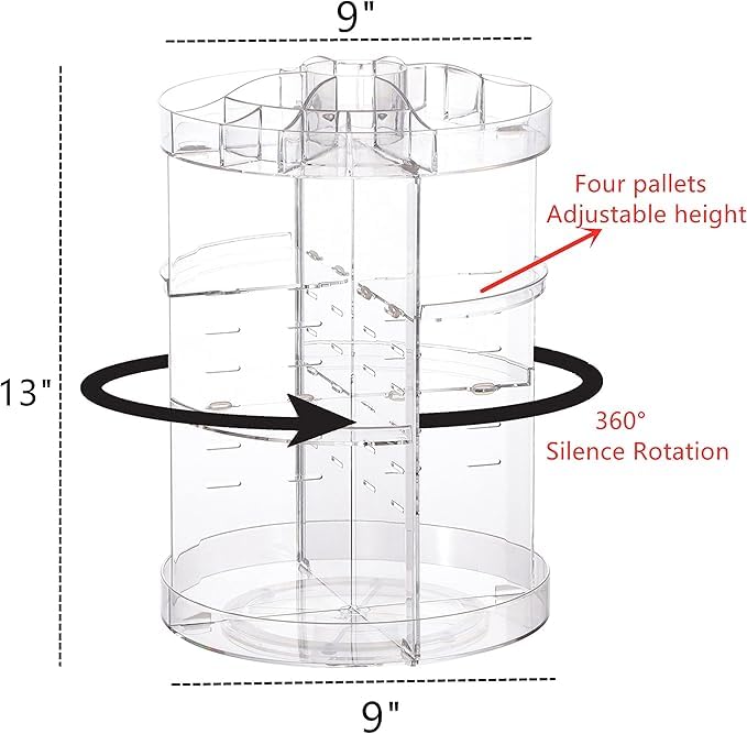 - ✅منظم مكياج دوار 360 درجة - يسمح الجزء السفلي من المنظم بنمط ليزي سوزان بدوران سلس 360 درجة، مما يجعل من السهل الوصول إلى مستحضرات التجميل ومستحضرات التجميل الخاصة بك بسرعة.