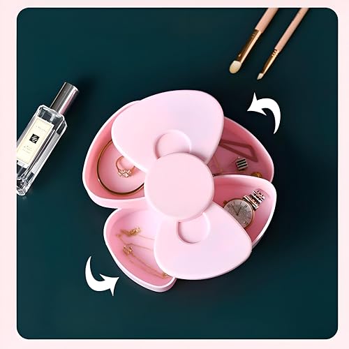 Generic - حافظة مجوهرات أنيقة تدور 360 درجة بتصميم فيونكة وردية للفتيات، مثالية لهدايا أعياد الميلاد واحتفالات عيد الأم، حل تخزين عالي الجودة، مجموعة هدايا أنيقة