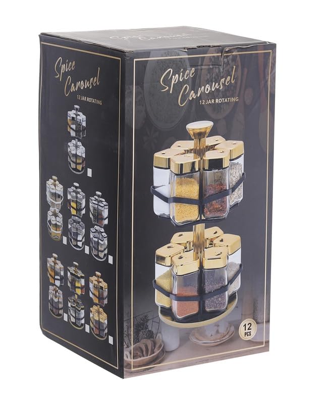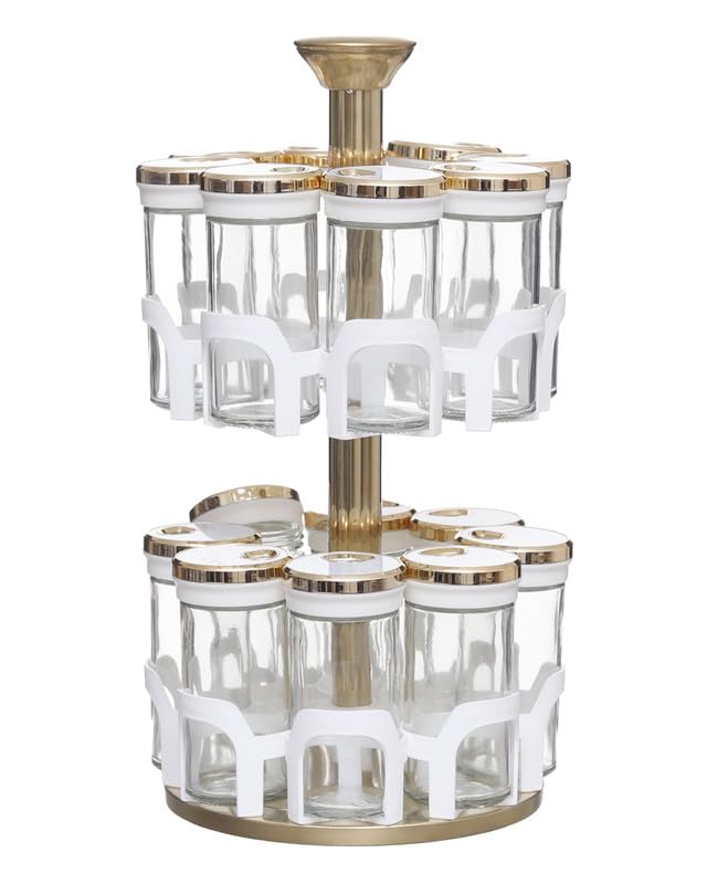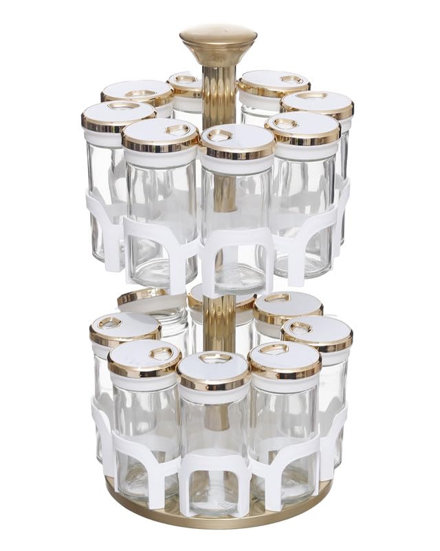 Generic - طقم توابل دائري دوار بزاوية 360 درجة 16 قطع مع حامل ، شفاف وابيض