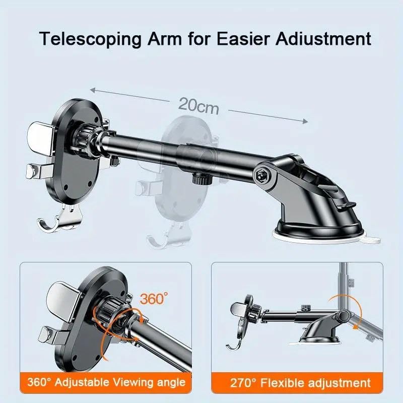 - 【ثبات شفط قوي】 يتميز بقاعدة شفط ممتازة، يثبت هذا الحامل بإحكام على لوحات العدادات أو الزجاج الأمامي، مما يحافظ على الثبات حتى على الأسطح غير المستوية أو الحفر أو التوقف المفاجئ، مما يضمن بقاء الهاتف بأمان في مكانه، مما يمنح السائقين الثقة في أمان الجهاز وسهولة الاستخدام المتسقة طوال كل رحلة