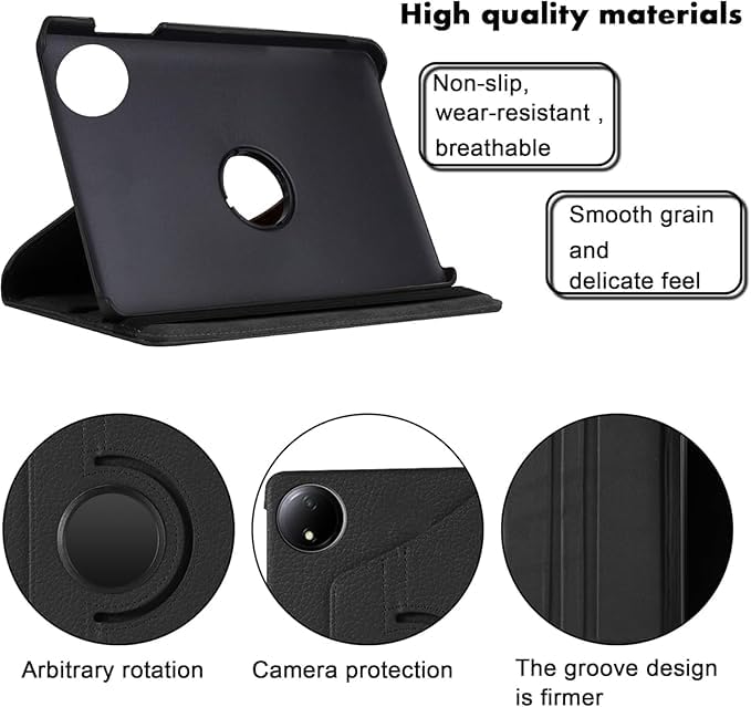 - تصميم دوّار: تتميز هذا الحافظة بقدرتها على الدوران 360 درجة، مما يوفر لك زوايا مشاهدة مرنة ويسمح لك بوضع الجهاز أفقيًا أو عموديًا.