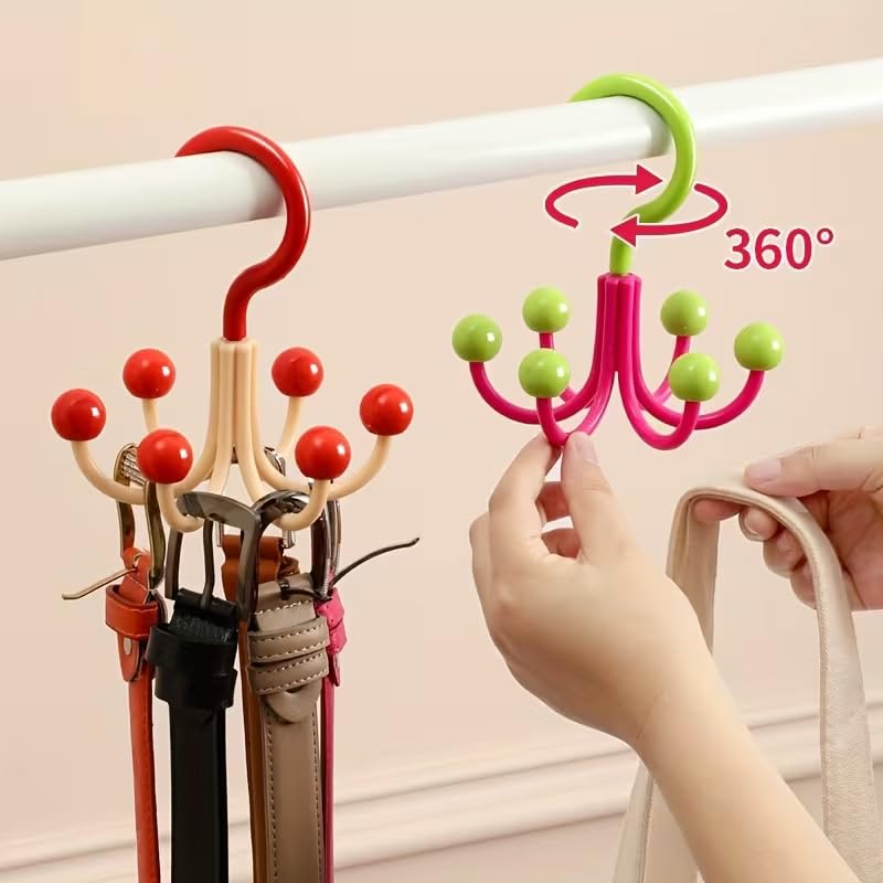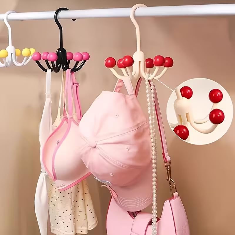 - 6 خطافات متعددة الاستخدامات: مزودة بستة خطافات بكرات ملونة توفر مساحة تخزين واسعة للحقائب والأحزمة والأوشحة والقبعات والإكسسوارات المختلفة