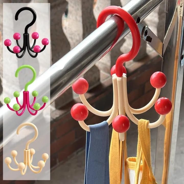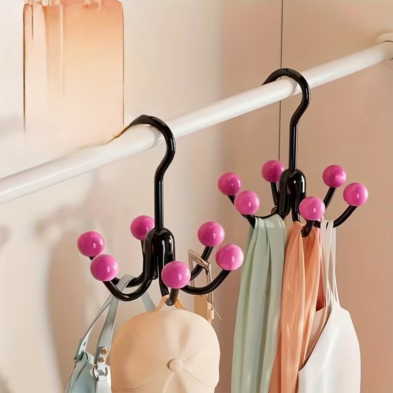 Generic - علاقة دوارة 360 درجة 2 قطعة متعددة الخطافات للحقائب والأحزمة والملابس والطرحة، 6 خطافات بكرات ملونة، أسود ووردي، 14×13 سم