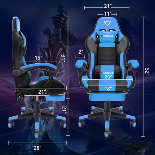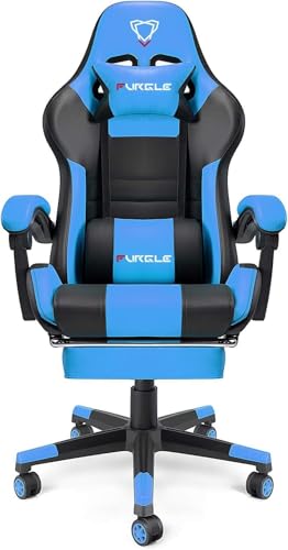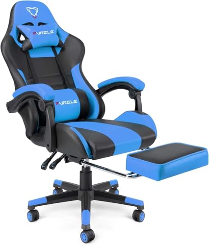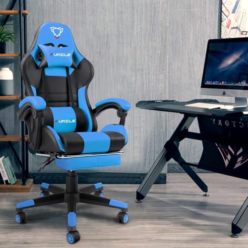 generic - كرسي ألعاب من جلد صناع مع مسند للقدمين مريح للمكتب لدعم منطقة أسفل الظهر بارتفاع قابل للتعديل، مقعد دوار 360 درجة بمسند رأس للكمبيوتر من المتحدة، أزرق وأسود