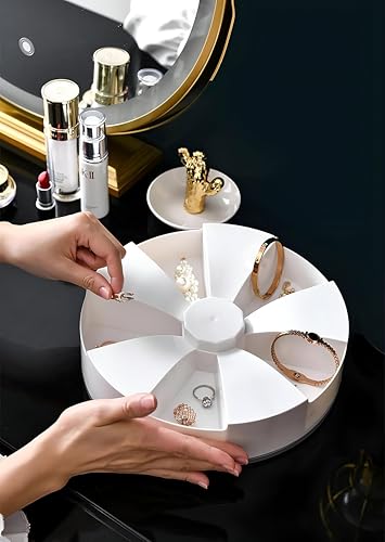 - 7. **مثالي للتخلص من الفوضى**: سواء كان ذلك للحمام أو طاولة الزينة أو خزانة الملابس، فإن صندوق التخزين الدوار هذا يساعد على التخلص من الفوضى ويخلق مساحة أكثر تنظيمًا وسهولة في الوصول إليها. يكمل تصميمه الأنيق أي ديكور داخلي مع توفير تخزين عملي لعناصر الملابس المختلفة.