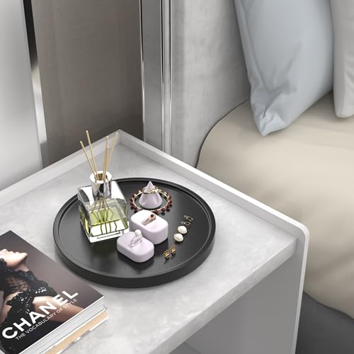 RKZ - صينية زينة للحمام قابلة للدوران 360°، صينية ديكور دوارة من خشب البلوط للعطور والشموع والصابون ومستحضرات العناية بالبشرة ومنضدة الزينة وتخزين الحوض، منظم سطح عمل خشبي لديكور الطاولة أسود، 28 سم