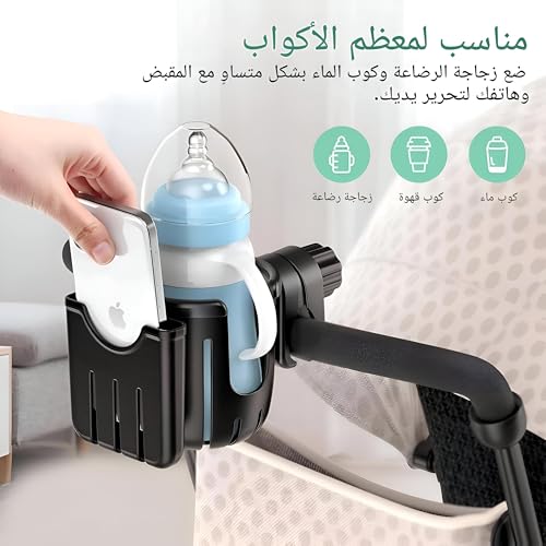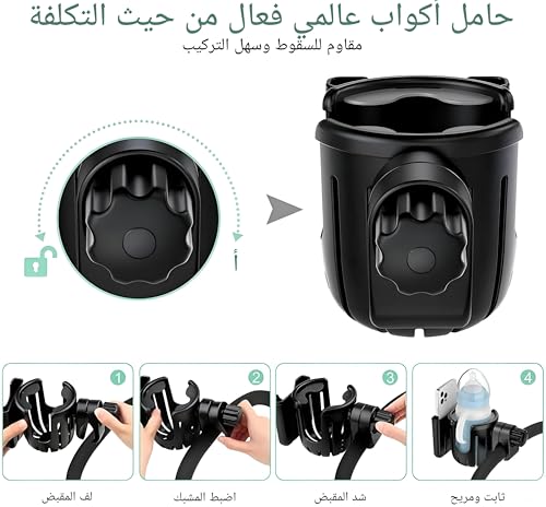 Generic - حامل موبايل وكوب دوار 360 درجة - يناسب الدراجات النارية والسكوتر وعربات الأطفال وأجهزة المشي وأي انبوب، مثالي لراحة بدون استخدام اليدين أثناء التنقل