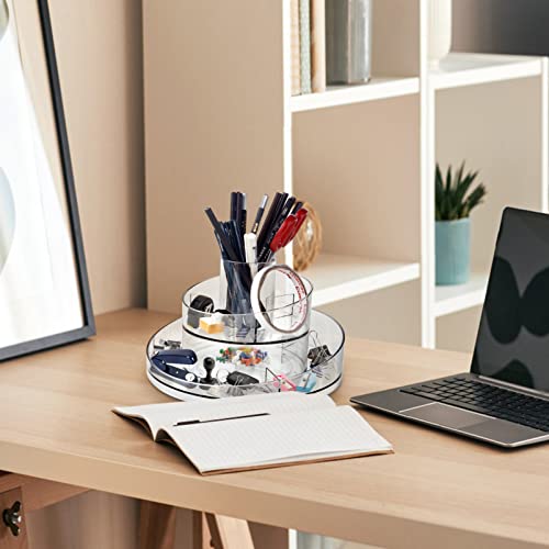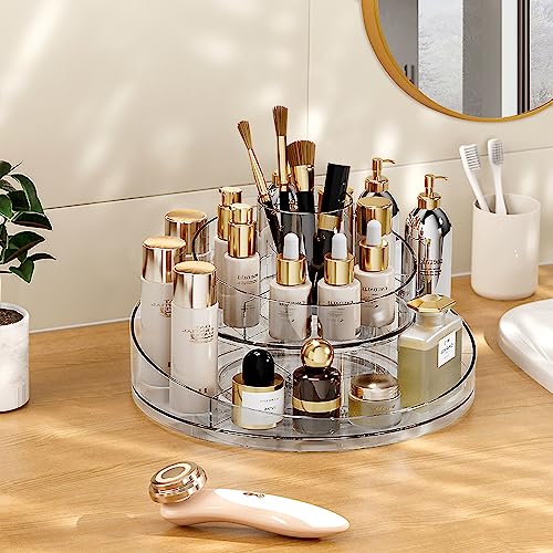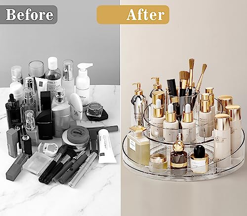 Generic - منظم مكياج دوار 360 درجة، منظم للعناية بالبشرة من طبقتين، منظم مكياج لتخزين مستحضرات التجميل واللوشن والعناية بالبشرة وفرش المكياج وأحمر الشفاه والعطور، منظم لخزانة الملابس والحمام والمجوهرات