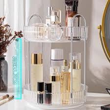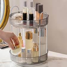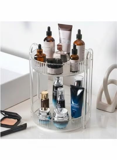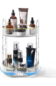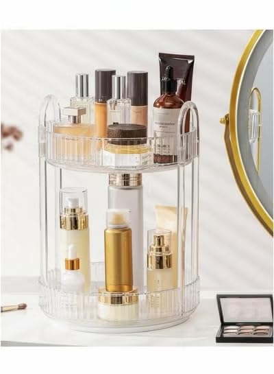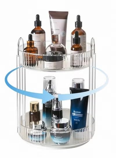 Generic - منظم مكياج دوار 360 درجة، حامل مكياج دوار بسعة كبيرة لتخزين مستحضرات التجميل على سطح الطاولة، يناسب مستحضرات التجميل والعطور واحمر الشفاه والعناية بالبشرة (طبقتين، كهرماني)