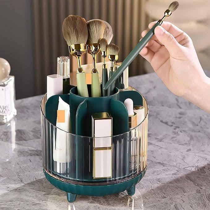 • منظم دوار 360° لترتيب فرش المكياج، الأقلام، العطور الصغيرة، والمستلزمات الفنية بسهولة.