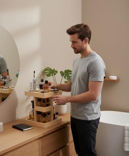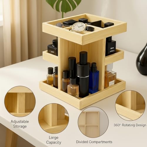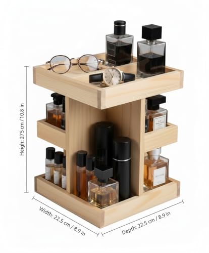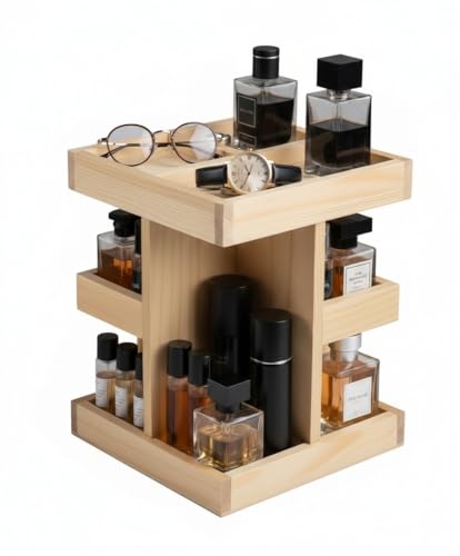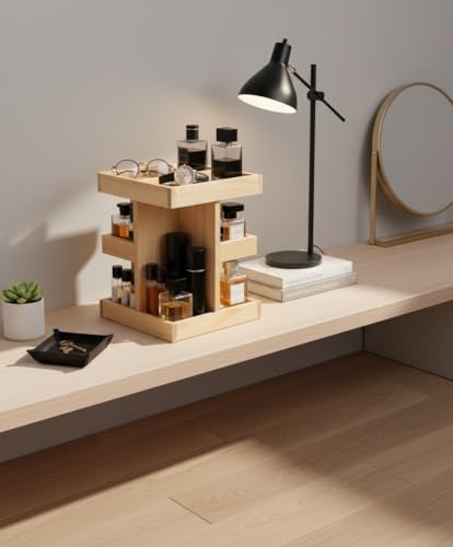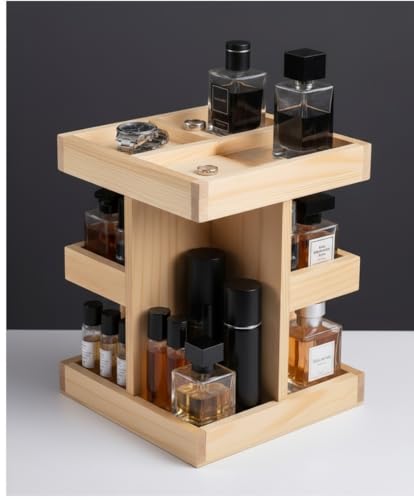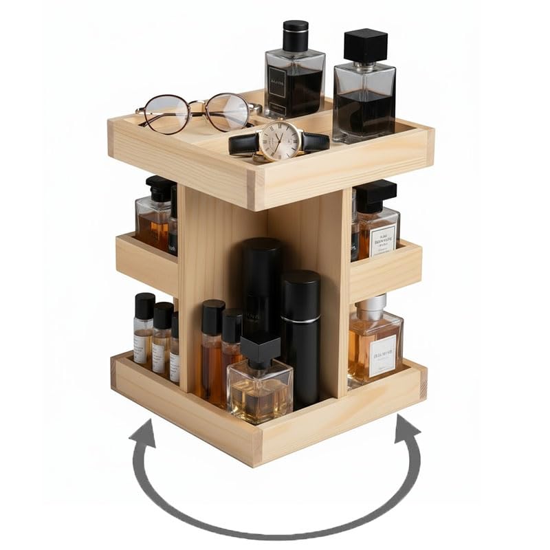 Nestoniyun - منظم خشبي دوار 360 درجة، منظم كولونيا للرجال، منظم حمام للرجال، صينية عطور، حامل كولونيا، صينية فانيتي ورف منضدة (خشب بورليوود) (خشب طبيعي)