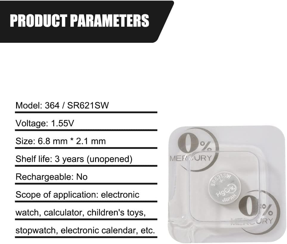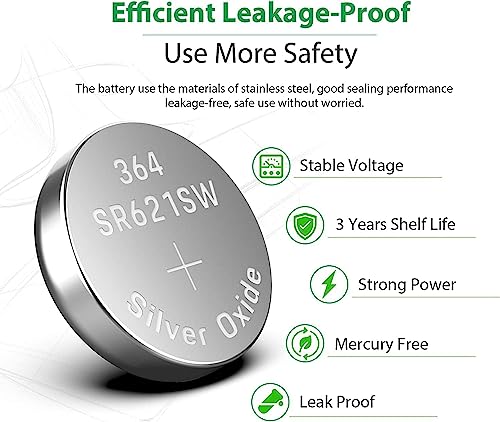 Generic - بطارية خلوية بشكل زر من أكسيد الفضة 1.5 فولت تدوم طويلا للساعات والأجهزة الطبية والآلات الحاسبة وغيرها قطعتان 364 - SR621SW