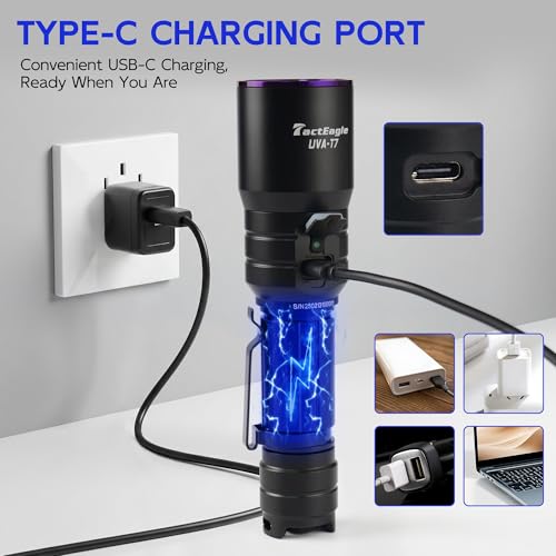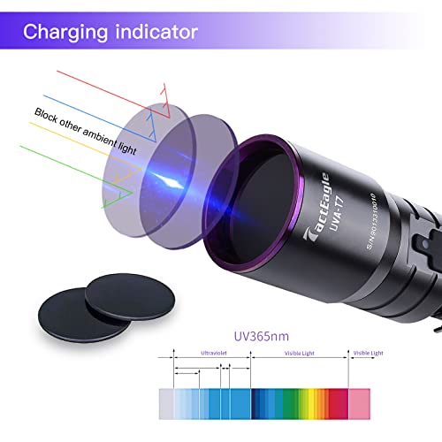 TactEagle - كشاف فلاش صناعي بالأشعة فوق البنفسجية 365 نانومتر UVA-T7 (للفحص غير المتلف) ومعالجة الراتنج والصمغ وكشف تسريبات التكييف والتنقيب عن المعادن والصخور من تاكت ايجل (البطارية غير مرفقة)
