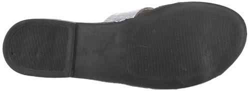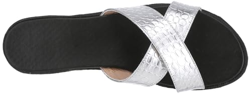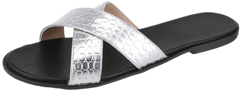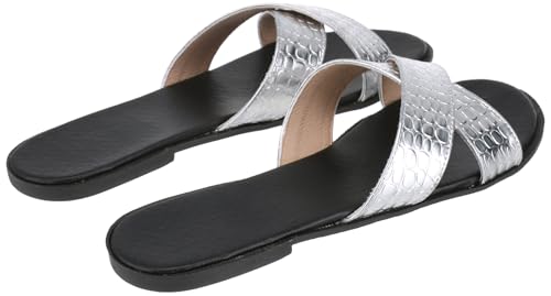SOUL 2 SOLE - شبشب بنعل خارجي مسطح ومريح باللون الأسود مع حزام علوي متقاطع معدني بسيط بنقشة جلد التمساح من سواي، لون بيوتر، مقاس 37