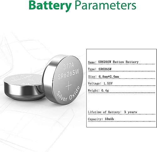 - توافق متعدد (بديل / مكافئ): بطاريات ساعة SR626SW و377 و626 وLR66 وLR626 وAG4 و377A و626SW وV377 و377/376 وv376/377 وSR626 و1.55 فولت