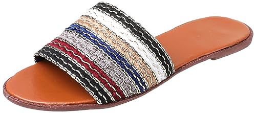 SWAY - مقاس EU 38، لون أسود، شبشب 1 سم من سواي، قش/قماش، تصميم مخطط