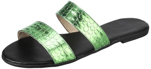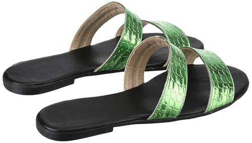 SOUL 2 SOLE - حذاء مسطح بتصميم مريح مع نعل خارجي مدمج وشريط علوي مزدوج بنمط جلد تمساح من سواي أخضر مقاس 38 EU اوكسفا