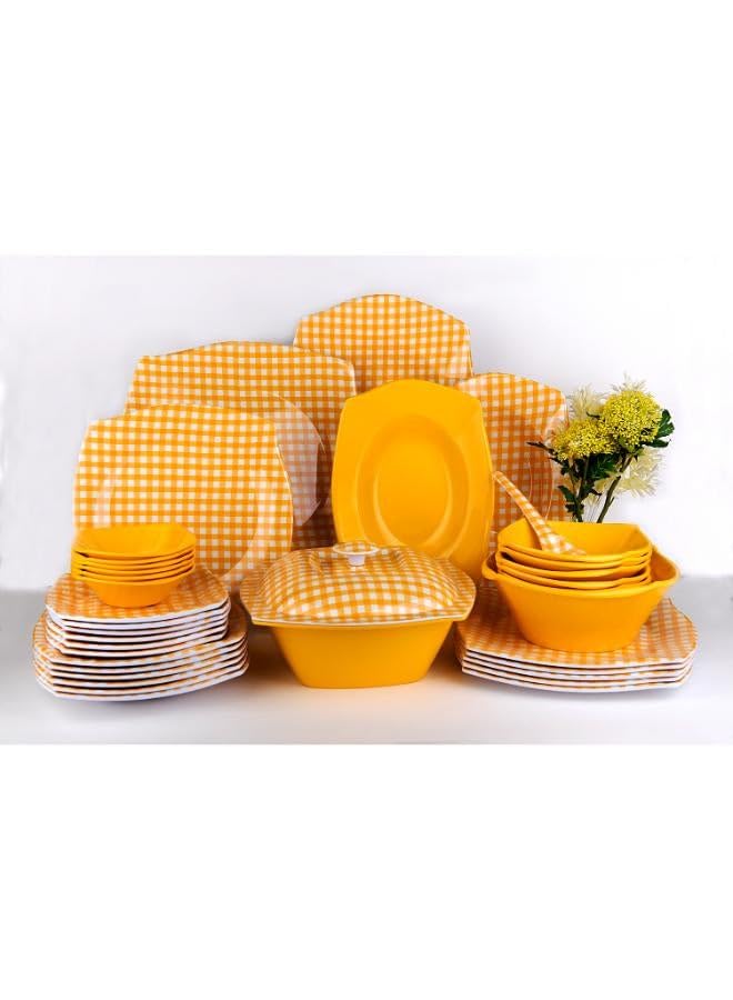 generic - طقم ادوات مائدة ميلامين مربع من 38 قطعة، كارو مختلط 57 × 41 × 30 سم - اصفر