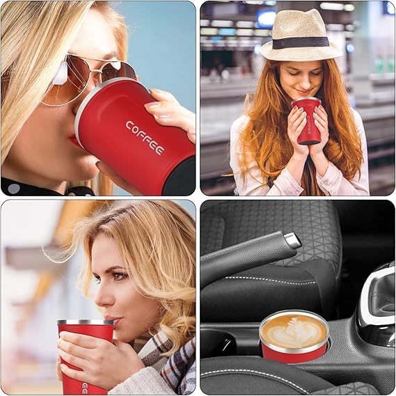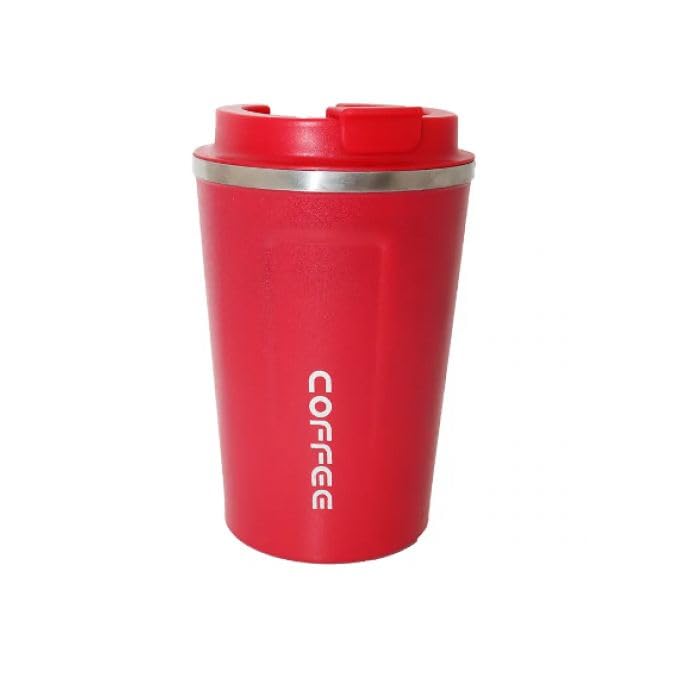 Generic - مج حراري بطبقة مزدوجة من الستانلس ستيل وغطاء محكم الغلق مضاد للتسريب مناسب للسفر للقهوة والشاي ؛ سعة 380 مل ( احمر )، معدن