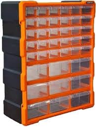 - يرجى ملاحظة: الألوان المتاحة للتسليم إما أزرق أو برتقالي، اعتمادًا على المخزون في متجرنا يتم شحن اللون الأزرق أو البرتقالي حسب التوافر في المخزون. مقاسات المنتج: 381 × 475 × 157 ملم تتضمن 30 درجًا صغيرًا مع فواصل و9 أدراج كبيرة مع فواصل ومقابض سحب للأدراج بقبضة الأصابع لتوفير سهولة الوصول وعروات توقف خلفية لمنع المحتويات من الانسكاب.