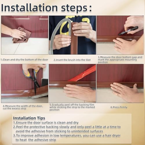 - تصميم فرشاة مطور مقاوم للتآكل يحمي الأرضية: فرشاة حشو الفراغات أسفل الباب سميكة وطويلة وعالية الكثافة، ستحمي الأرضيات والسجاد، ولا تصدر أصوات مزعجة أو تعلق أثناء فتح الباب وإغلاقه.