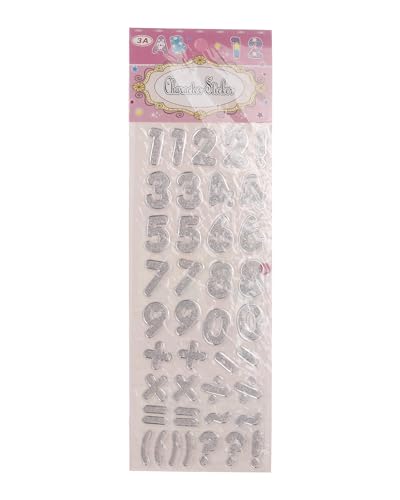Generic - ستيكرات لاصقة 21915-1 طراز 3A-5034-Silver33 من البلاستيك لتعليم الأرقام الإنجليزية للأطفال من ثري ايه، لون فضي، عبوة من 6 قطع
