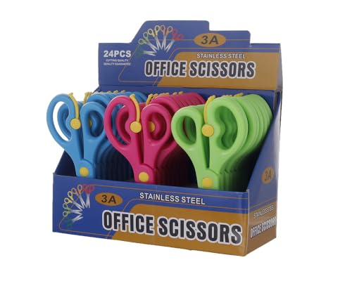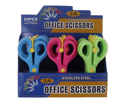 3A - 3 ايه طقم مقص مكتب معدني بمقبض بلاستيك 24 قطعة 7009-24 - متعدد الالوان