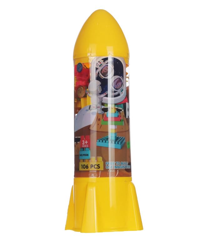 3A - 3 ايه مكعبات بناء تعليمية صغيرة بلاستيكية مع صاروخ فضاء 9953B 106 قطعة - اصفر
