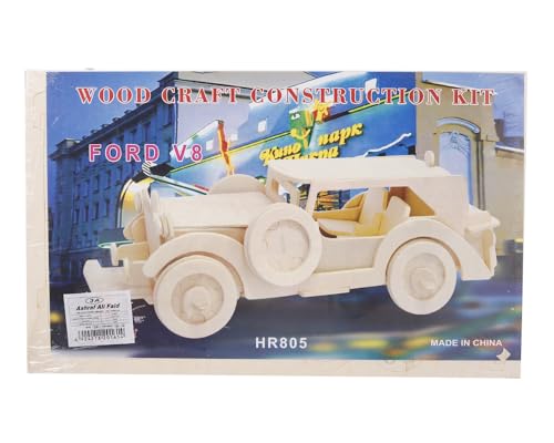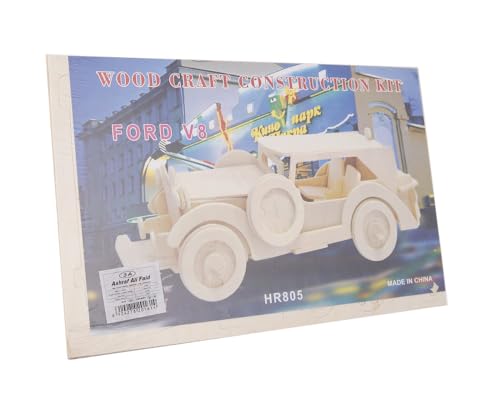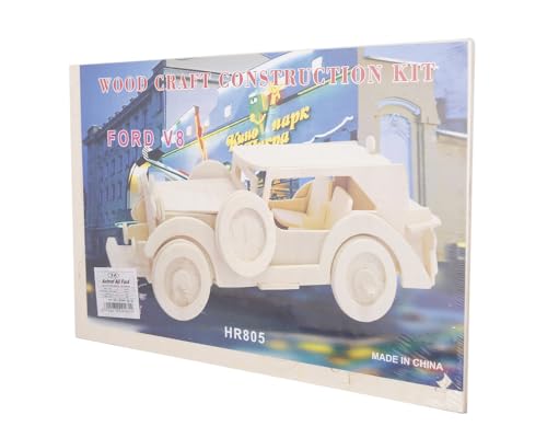3A - لعبة بازل ثلاثية الأبعاد خشبية بتصميم سيارة فورد V8 للأطفال بأعمار من 3 إلى 5 سنوات من ثري ايه، لون بيج، Hr805