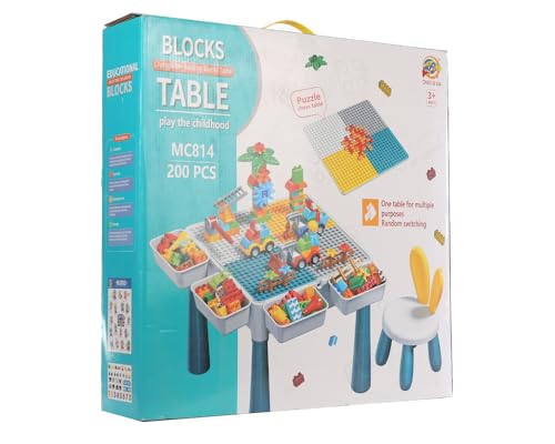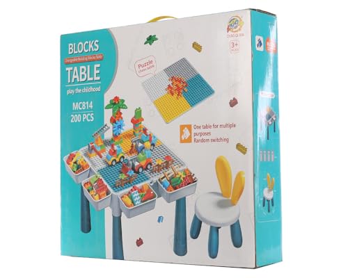Generic - طاولة مكعبات سيليكون متعددة الألوان طراز MC814-2-89 مع مقعد من ثري ايه، 200 قطعة