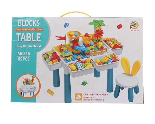 Generic - طاوله مكعبات سيليكون 85 قطعه للاطفال مع كرسي من 3A - متعدد الالوان MC816-2-90