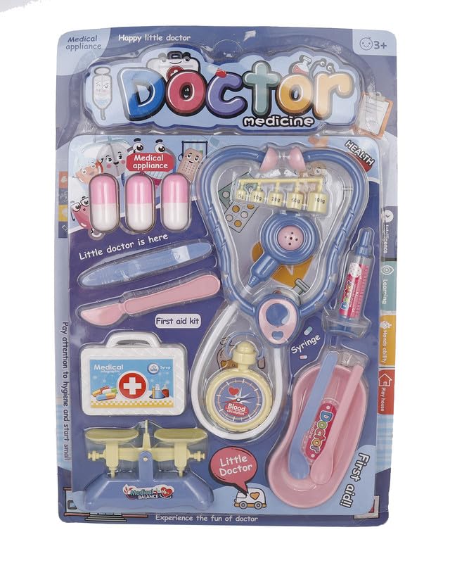 - تتميز مجموعات ألعاب الطبيب البلاستيكية بنسخ طبق الأصل من الأدوات الطبية الآمنة للأطفال مثل سماعات الطبيب والحقن وموازين الحرارة والمطارق الانعكاسية ومناظير الأذن وأساور ضغط الدم.