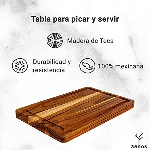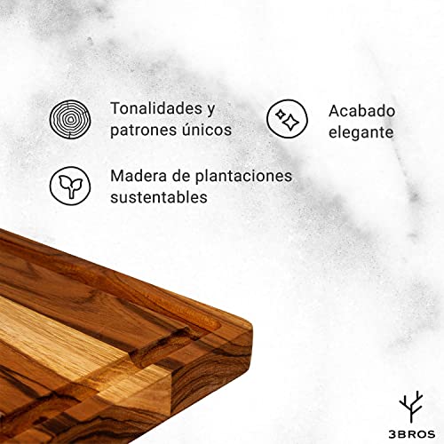 3BROS - لوح خشب الساج للتقطيع والتقديم - خشب ناعم مستدام - استخدام احترافي - عرض مثالي على صحونك - سهل الغسيل والصيانة - 30 سم × 40 سم × 2.2 سم من 3بروس