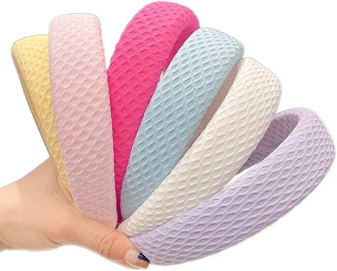 Generic - طوق رأس عريض مبطن بنمط الوافل، 3 سم، إكسسوارات شعر نسائية كلاسيكية، طوق شعر سميك بدون أسنان (6 قطع)
