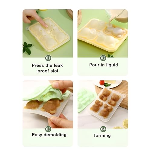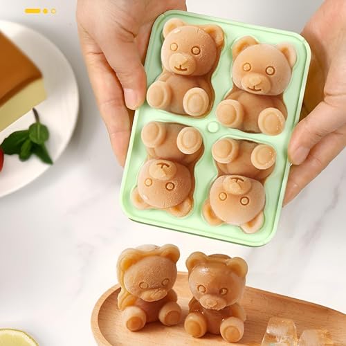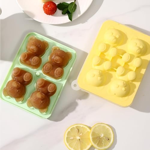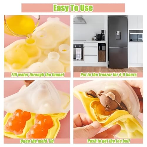 Generic - صينية مكعبات ثلج ثلاثية الأبعاد على شكل دب رائعة مثالية للمشروبات والكوكتيلات، يوفر قالب السيليكون هذا أربعة أقسام على شكل دب وغطاء قمع شفاف عملي للحشو والتقديم بدون درزات